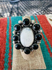 Navajo Sterling Silver, White Buffalo & Onyx Cluster Adjustable Ring | Zarnesh