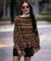 Women Red Fringe Trim Batwing Sleeve Poncho Sweater | Zarnesh