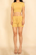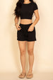Crafted from a soft, stretchy ribbed knit fabric, the top offers a flattering cropped silhouette while the shorts deliver a relaxed fit with an elastic waistband and adjustable drawstring for a custom feel. Lightweight and breathable, this set is made for warm-weather lounging, running errands, or just vibing in comfort.
