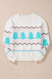 Celebrate the season in cozy style with the Women’s Christmas Tree Chevron Stripe Ribbed Trim Pullover Sweater from Zarnesh. This white holiday sweater features cheerful aqua blue Christmas trees and playful chevron stripes in soft pink and cocoa brown for a festive-meets-modern look. The drop-shoulder silhouette and ribbed trim keep it comfy yet polished, making it perfect for everything from festive parties to fireside cocoa sipping. Designed for both comfort and cheer, this piece is your go-to for winter magic.