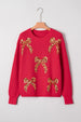 The vibrant red hue features dazzling sequin bows that elevate your look. With a loose fit and drop shoulder design, it offers both comfort and a relaxed vibe. Pair it with leggings or a skirt for a festive outfit that embodies the holiday spirit.
