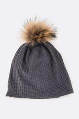 Chic Faux Fur Pom Cotton Slouchy Beanie