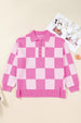 Women’s Plus Size Checkered Knit Half-Button Sweater | Zarnesh
