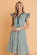 Accent: Double Ruffle Sleeves and Contrast Border Trim