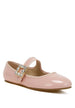 Add a touch of glamour to your wardrobe with the Women Upstage Brooch Mary Jane Flat Heels Ballerinas by Zarnesh. These stunning Mary Jane ballet flats feature a sparkling brooch-embellished strap, giving them a luxurious and elegant aesthetic. Crafted from metallic pleather, they ensure durability and style, while the comfortable cushioned insoles and flat heels provide a relaxed, strain-free fit. Perfect for day-to-night events, these ballerinas combine sophistication with all-day comfort.